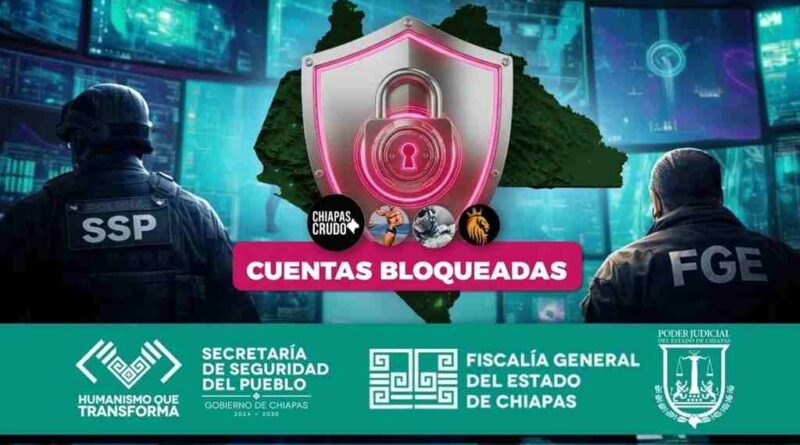 La Secretaria de Seguridad Estatal informó que con apoyo de la Fiscalía General del Estado y el Poder Judicial fueron inhabilitadas las cuentas denominadas “Chiapas Crudo”, “Tabo Ruiz”, “Marino Militar” y “Lupita Álvarez Jiménez”.