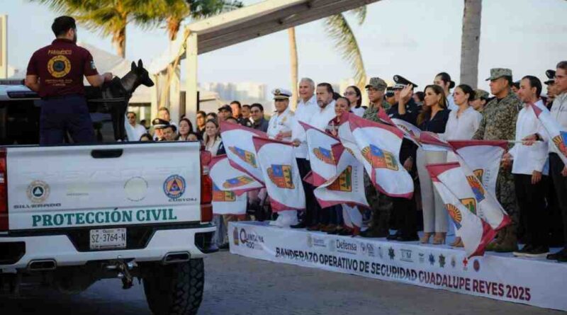 Cancún, Quintana Roo. En el Malecón Tajamar de Cancún, la gobernadora Mara Lezama Espinosa, acompañada de autoridades de los tres niveles de gobierno, dio el banderazo para el inicio del Operativo de Seguridad Guadalupe–Reyes 2025, que se desarrollará del 12 de diciembre de 2025 al 7 de enero de 2026, con el objetivo de salvaguardar a residentes y turistas durante la temporada decembrina.
